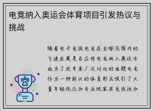 文章摘要:本文探讨了悉尼奥运精神对东京奥运会创新与挑战的深远影响。悉尼奥运会通过其“多元共融”理念激励了全球体育赛事的变革,而东京奥运会则通过技术创新、社会参与与环境保护等方面,承载并发展了这一精神。文章从创新技术的应用、环境保护的责任、社会参与的提升等多个角度展开,分析了东京奥运如何在悉尼奥运精神的激励下,推动了体育赛事的现代化,并应对了疫情挑战、全球化及可持续发展等问题。通过全面回顾东京奥运会...